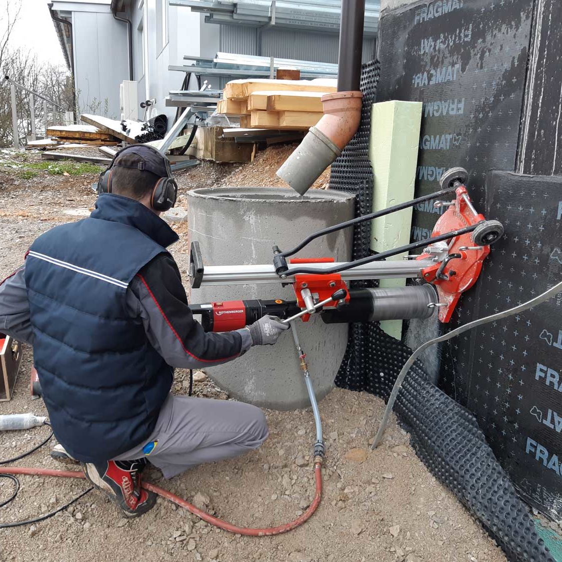 Izvajamo diamantno vrtanje betona, armiranega betona, kamna, opeke in asfalta. Diamantno mokro vrtanje se najpogosteje uporablja za izvrtine za prezračevanje, za dimnike kaminov in peči ter za odtočne in druge cevi. Najpogosteje vrtamo v stene, armirano betonske plošče, v beton, železobeton, opeko, siporeks in različne kamnine.